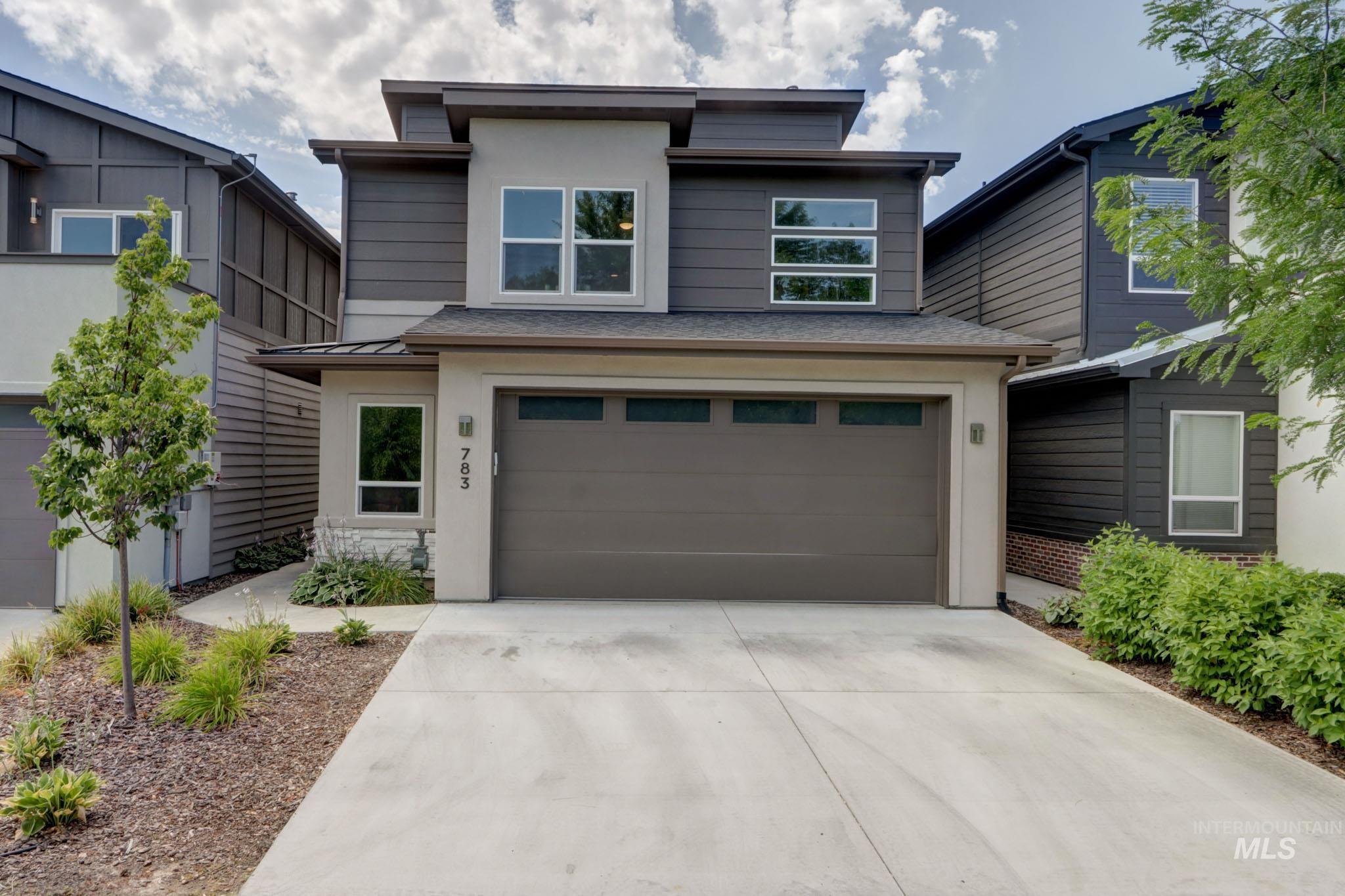 NO drive-through traffic! This almost-new, modern home backs to Five-Mile Creek Trail and feels secluded - but it's halfway between downtown Meridian and Kleiner Park/village shopping, plus has easy access to the city bus route. Tall ceilings on both floors, large bedrooms, open concept living space, abundant closet space, dual vanities in the bathrooms, and a huge (26' long) bonus area upstairs.